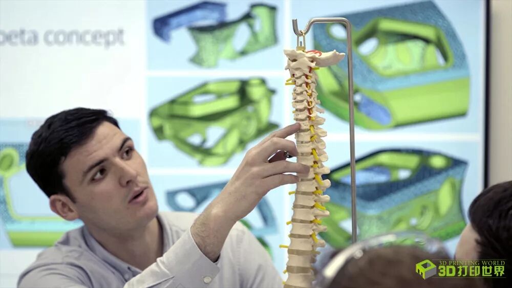 MR公司首先使用nTopology公司的新一代设计软件设计了一个具有代表性的钛合金颈椎植入体,然后在雷尼绍RenAM 500M金属增材制造系统上制成该植入体。