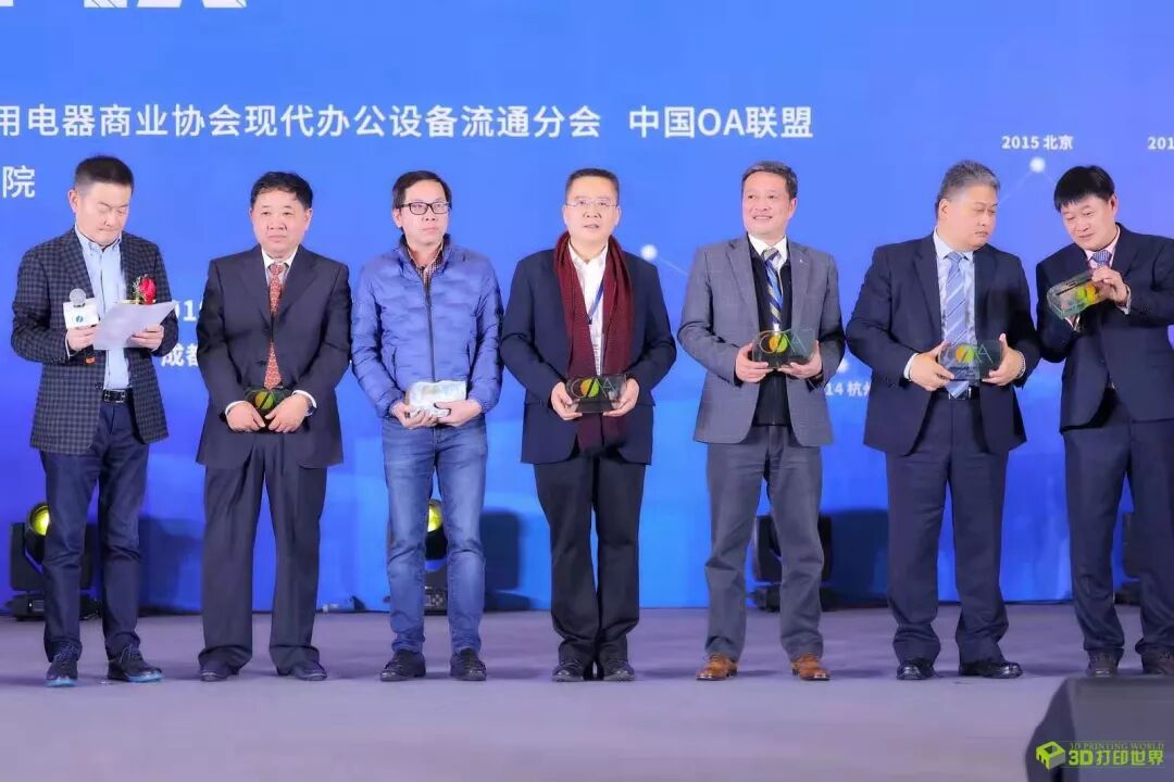 获奖者手中拿着的颇具份量的3D打印奖牌