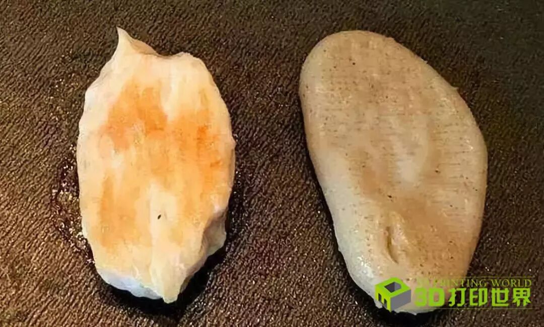 真鸡胸肉(左) Novameat 3D打印的鸡胸(右)