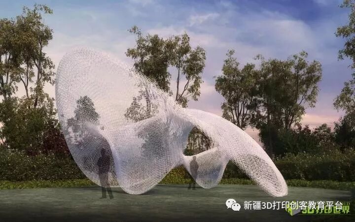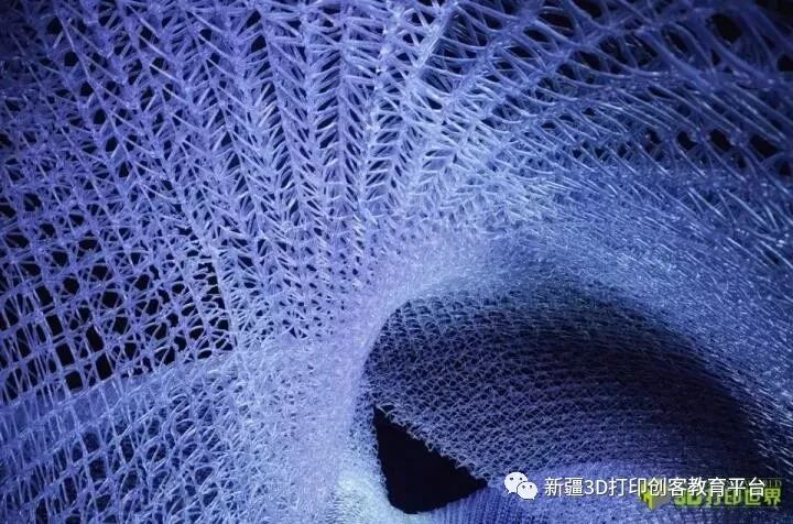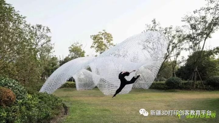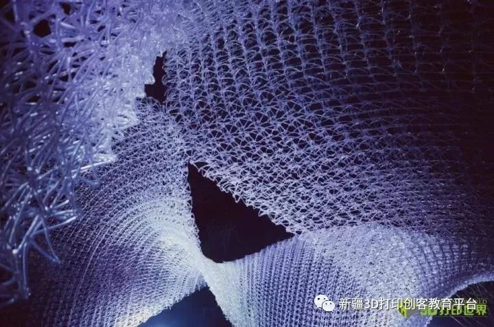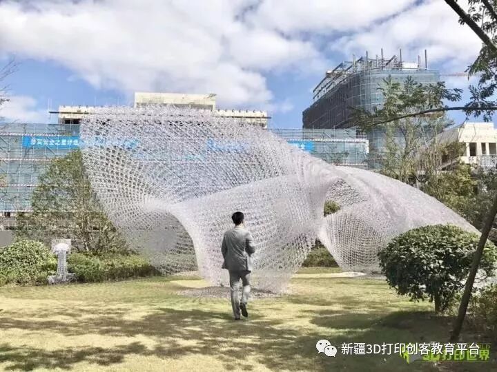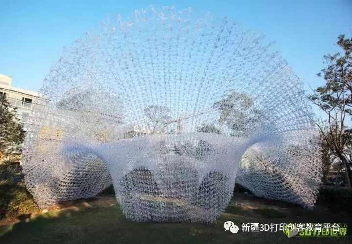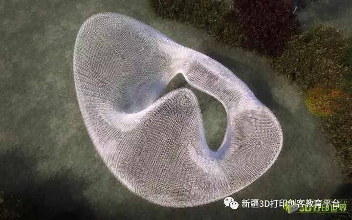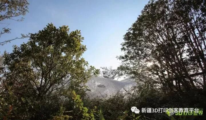 揭秘二:简单点的版本,直接就是“3D打印”四个大字,详细点说的话,“云亭”是由6轴机器臂通过空间打印加工而成。